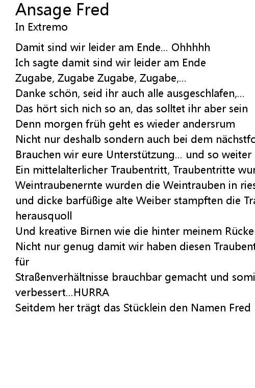 | Seitdem her tr gt das Stü cklein den Namen Fred |