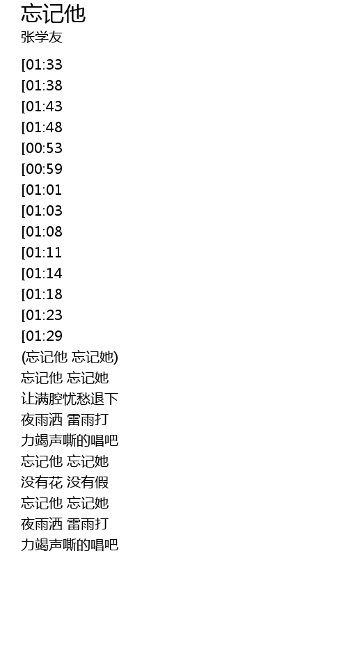 | [02:54][01:33][00:25] | 忘记他 忘记她 |