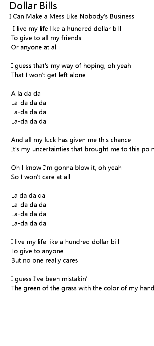 I live my life like a hundred dollar bill |