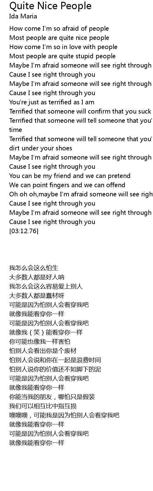 | [00:21.61] | Most people are quite nice people |