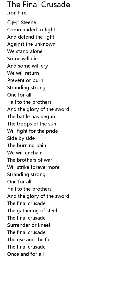 | Song | The Final Crusade |