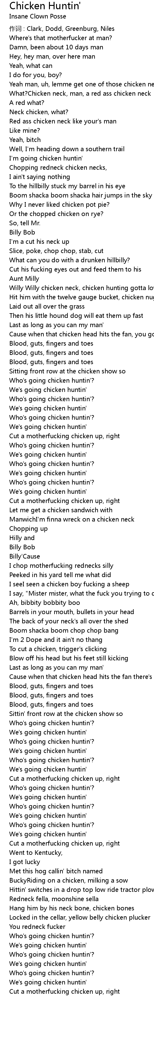 | Song | Chicken Huntin' |