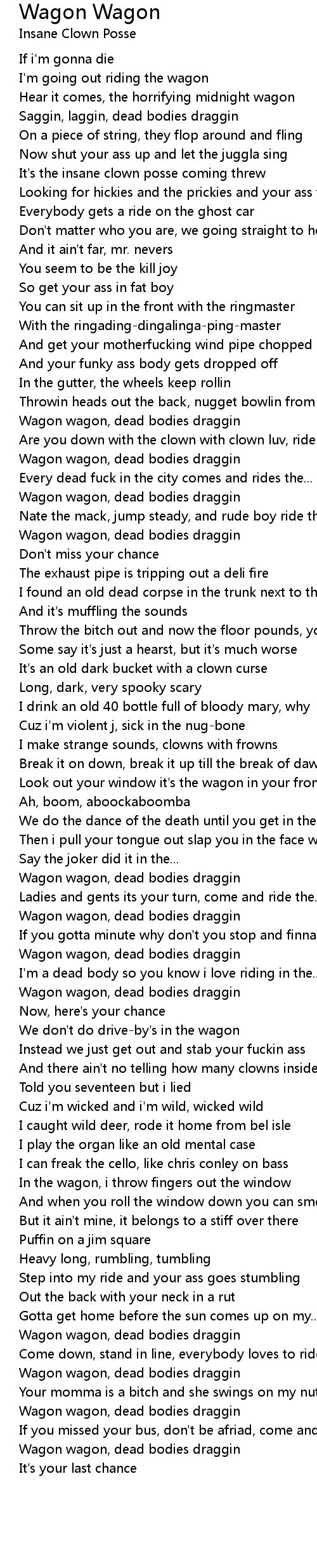 Wagon wagon, dead bodies draggin |