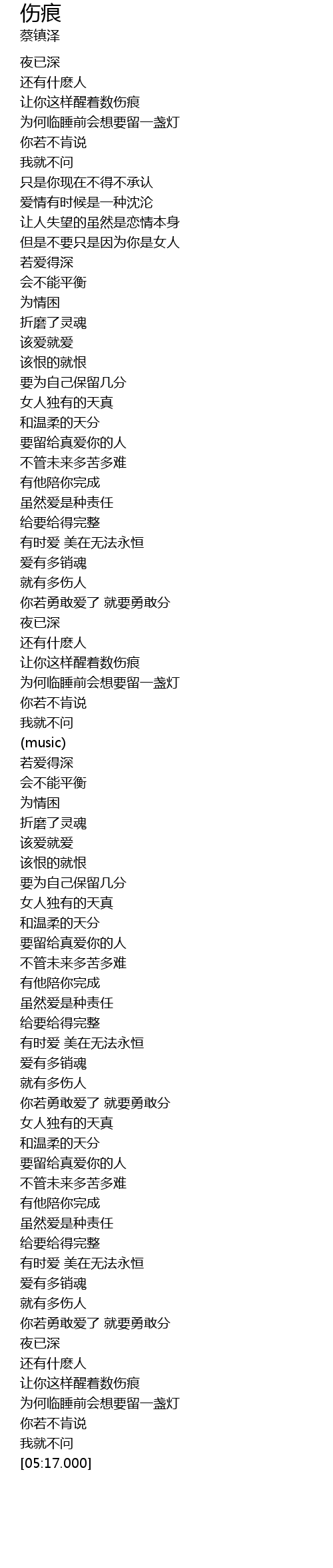 | [04:59.000] | 让你这样醒着数伤痕 |
