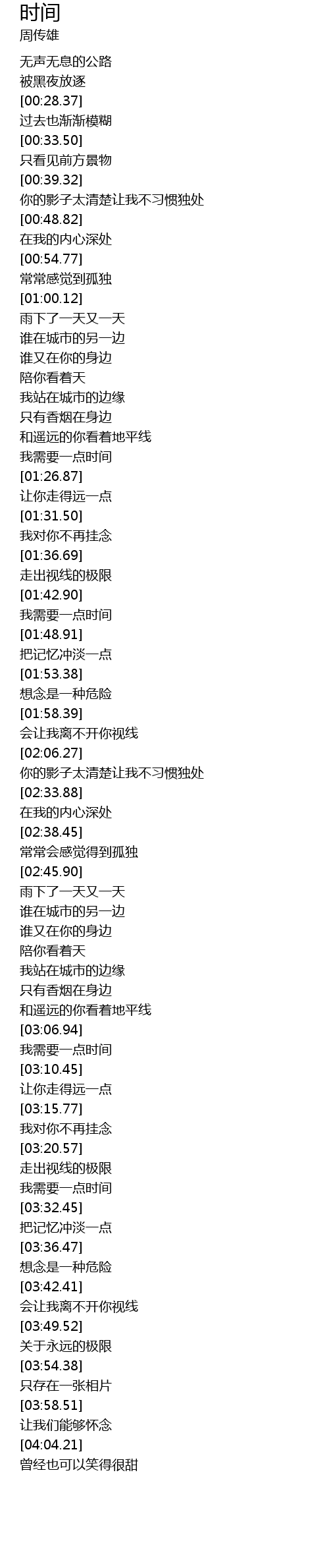 | [03:29.33] | 我需要一点时间 |