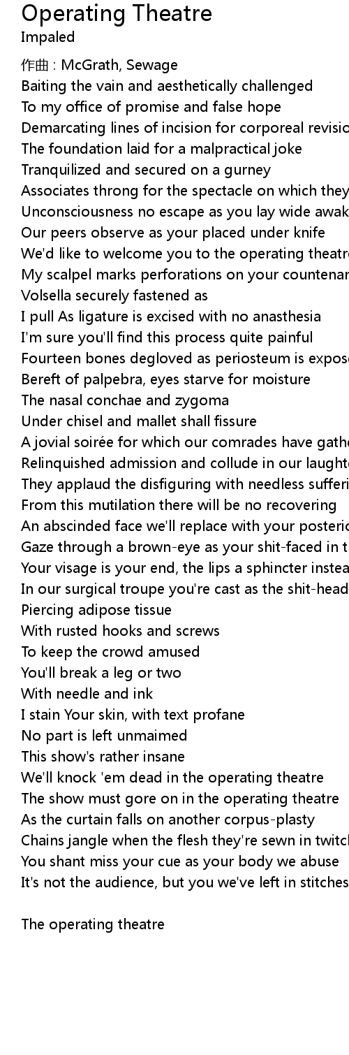 | Song | Operating Theatre |