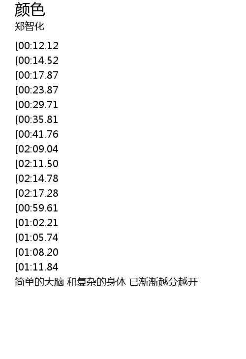| [02:35.36][02:11.50][00:50.24] | 越来越多的颜色 |