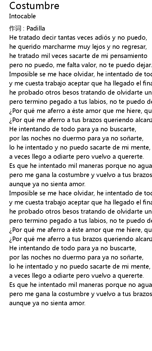 | pero me gana la costumbre y vuelvo a tus brazos | |