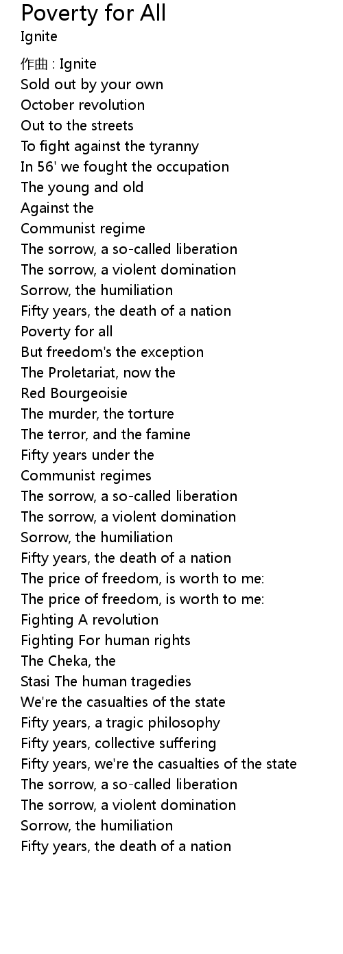 | Song | Poverty for All |