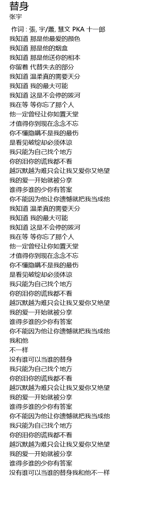 | [04:22.870] | 没有谁可以当谁的替身我和他不一样 |