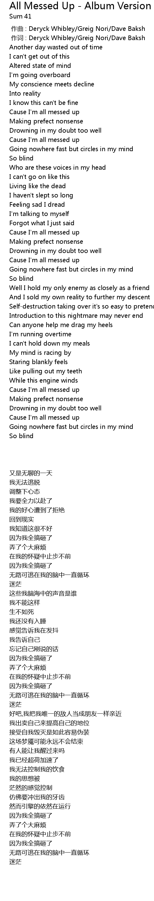 | [00:01.000] | 作词 : Deryck Whibley/Greig Nori/Dave Baksh |