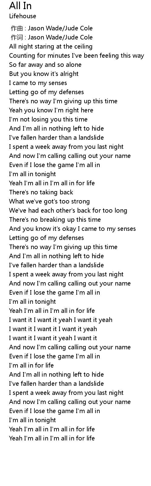 | [03:41.190] | Yeah I' m all in I' m all in for life |