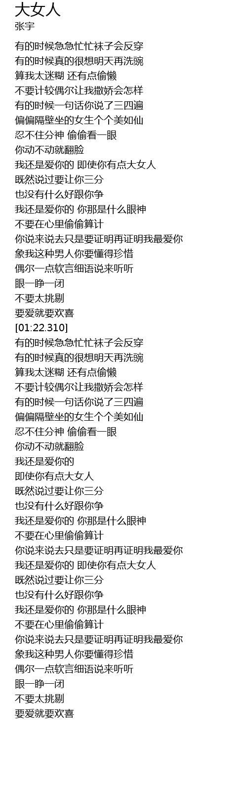| [02:44.150] | 我还是爱你的 即使你有点大女人 |