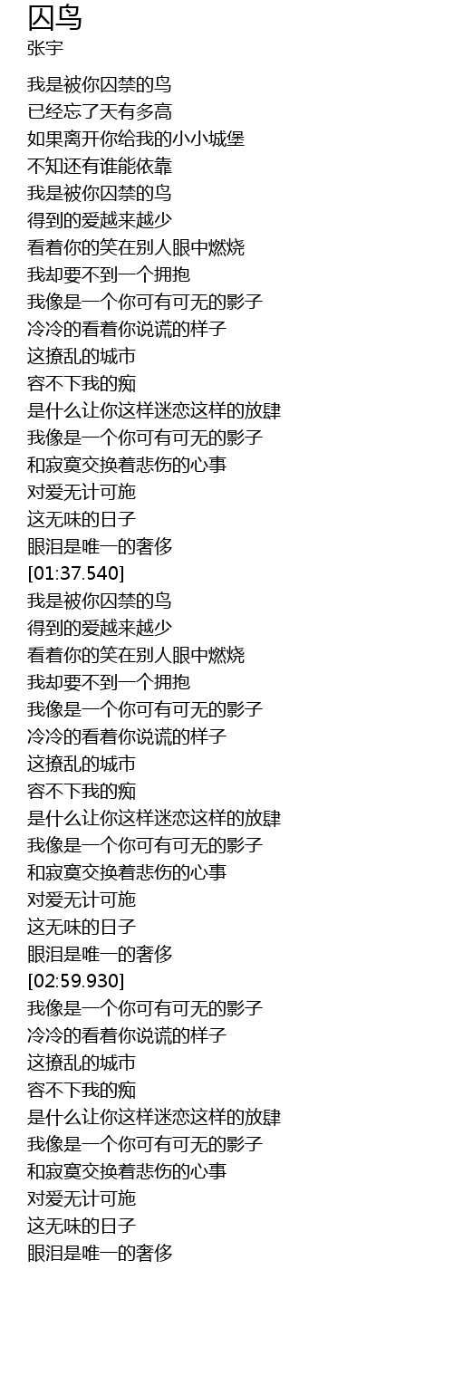 | [01:52.150] | 我是被你囚禁的鸟 |