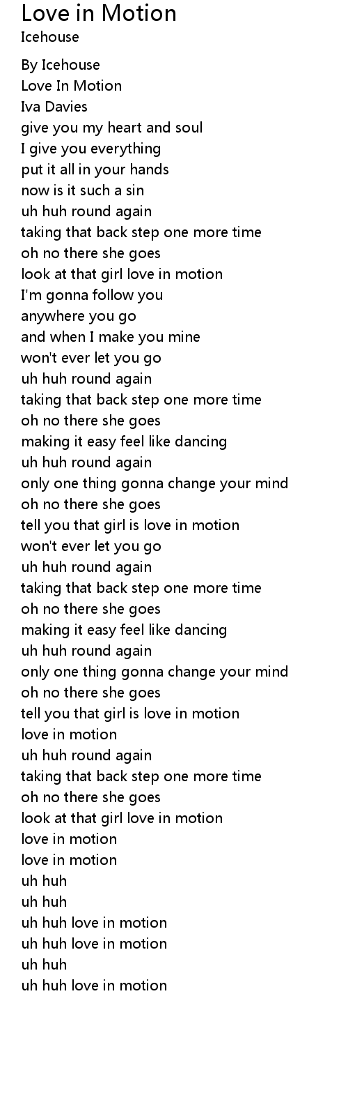 | uh huh love in motion | |
