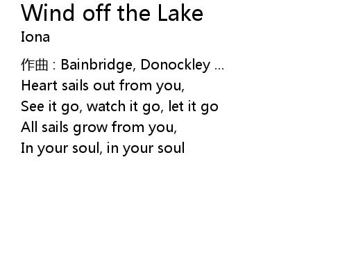 | Song | Wind off the Lake |