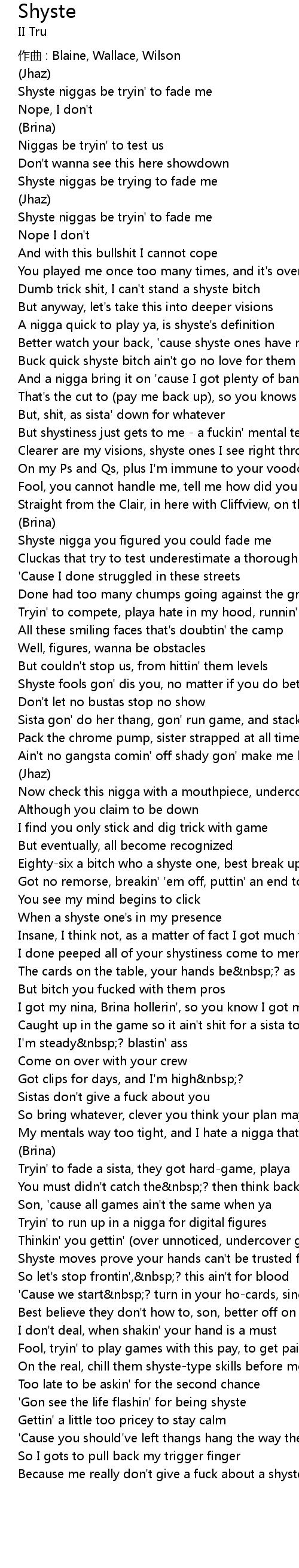 | My mentals way too tight, and I hate a nigga that' s shyste | |
