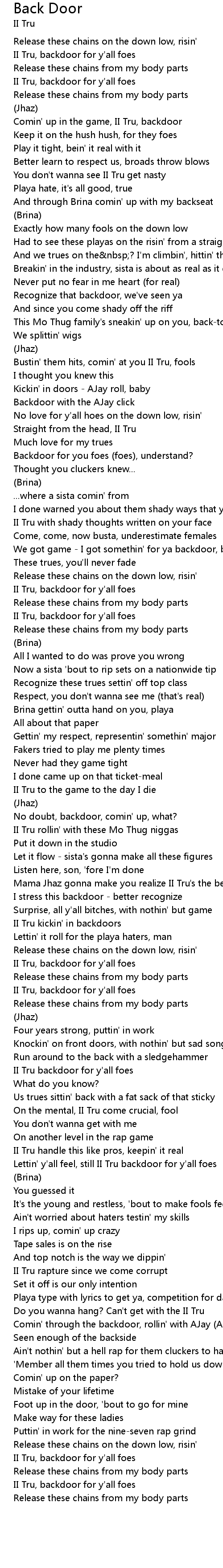 II Tru, backdoor for y'all foes |