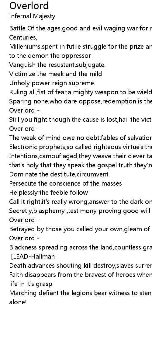 Blackness spreading across the land,countless graves cry out and curse your name [LEAD-Terror] [LEAD-Hallman] |