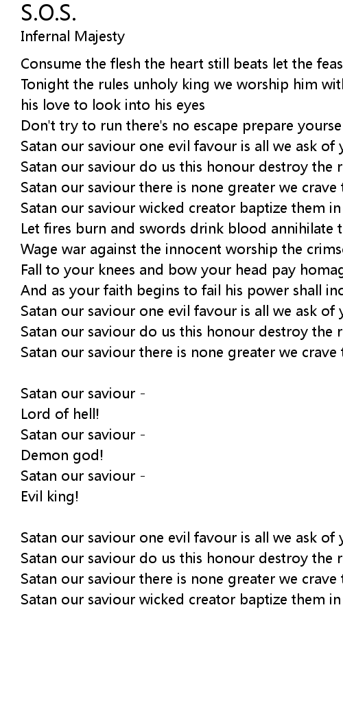 Satan our saviour one evil favour is all we ask of you |