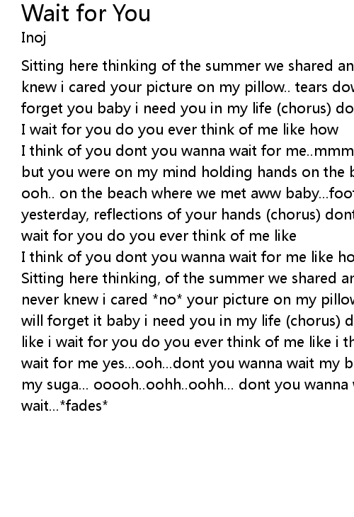Sitting here thinking of the summer we shared and how u went away baby you never knew i cared your picture on my pillow.. tears down the side i'll never will forget you baby i need you in my life (chorus) dont you wanna wait for me like |
