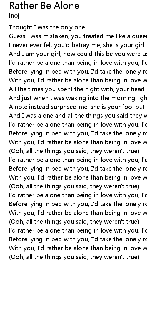 I'd rather be alone than being in love with you, I'd sleep out in the cold |