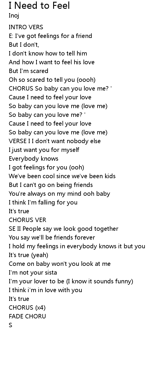 Cause I need to feel your love |