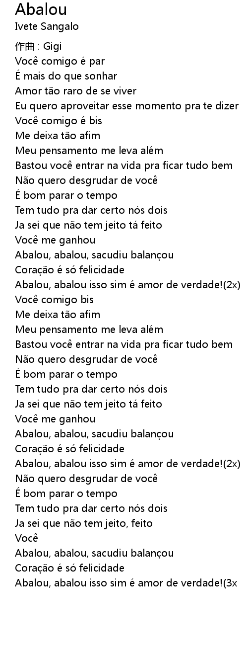 | Abalou, abalou isso sim é amor de verdade!(2x) | |