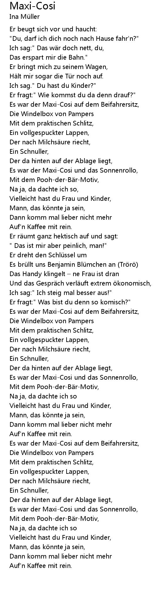 | Song | Maxi-Cosi |