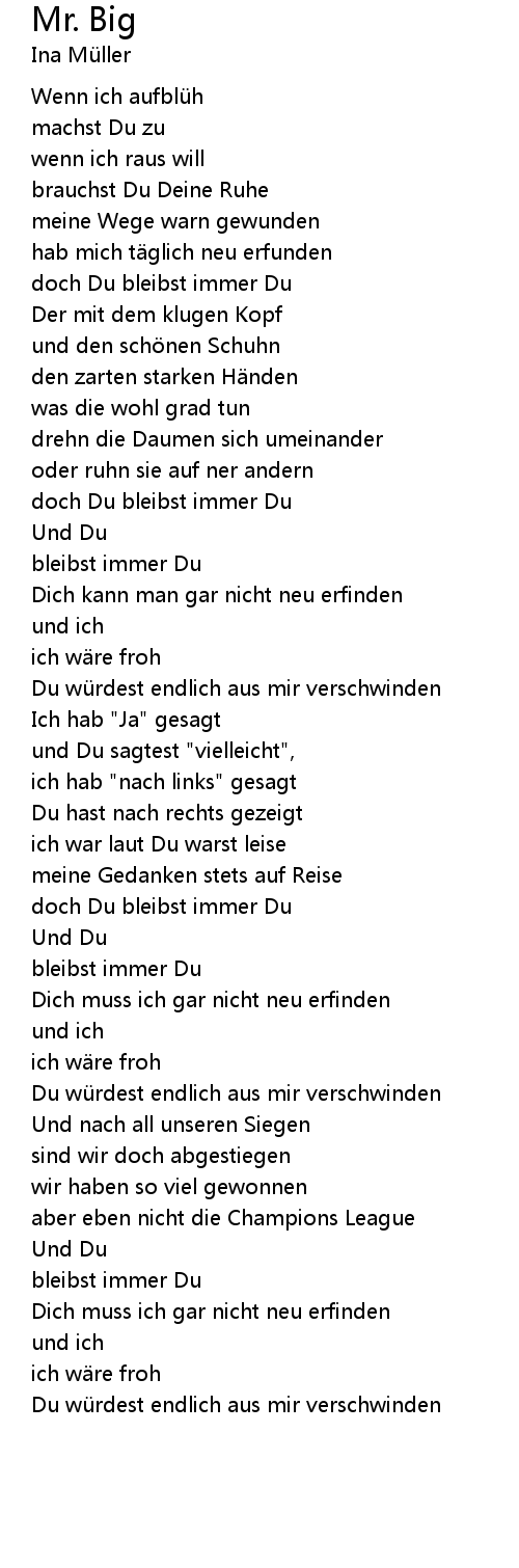 | Du wü rdest endlich aus mir verschwinden |