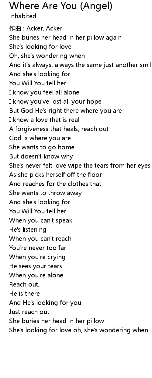 | Song | Where Are You (Angel) |