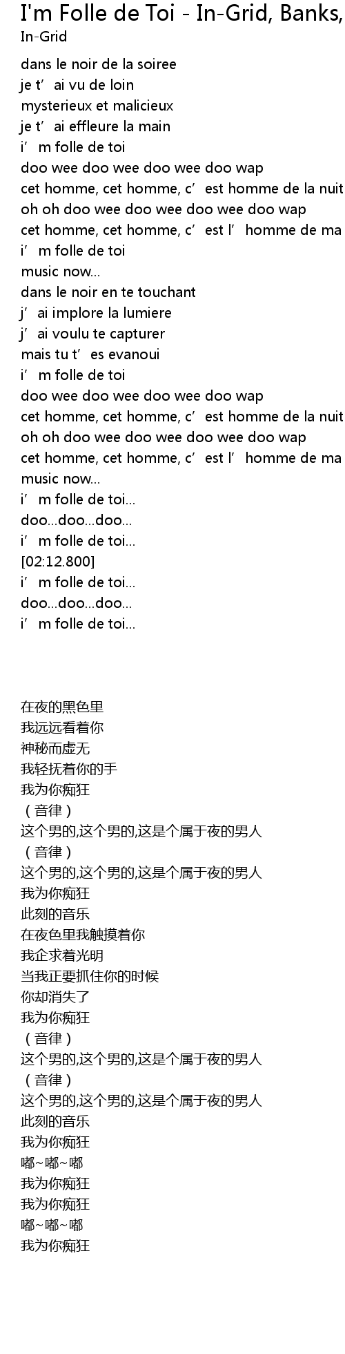 | Song | I'm Folle de Toi - In-Grid, Banks, C. |