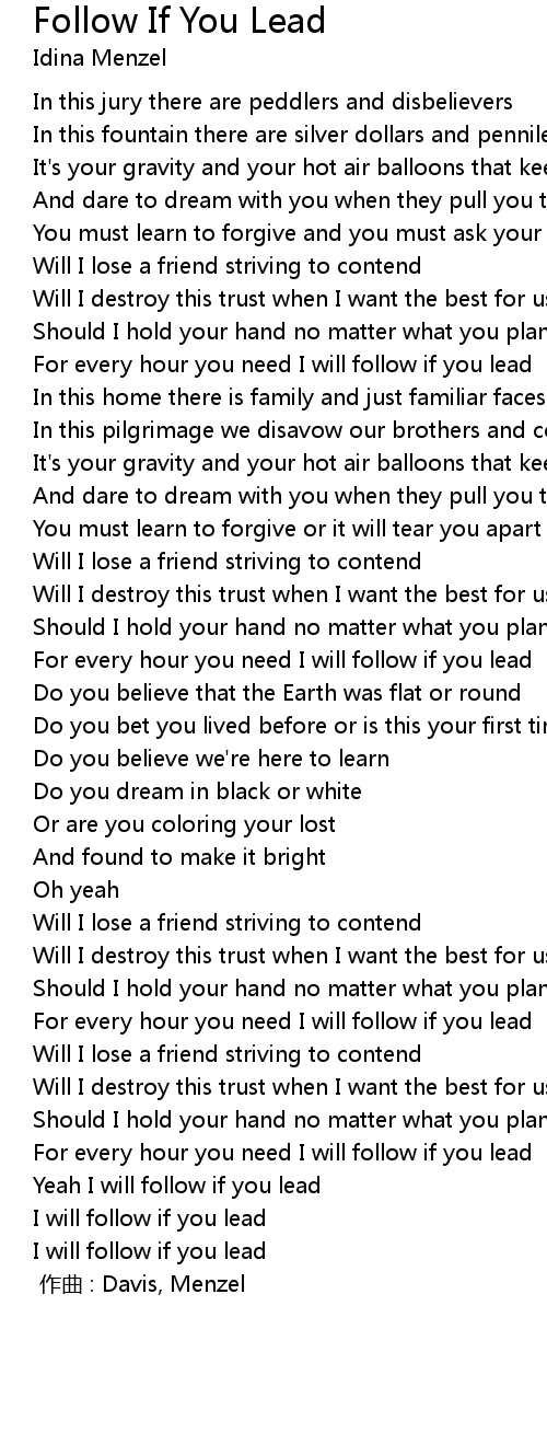 | [00:00.000] | zuo qu : Davis, Menzel |