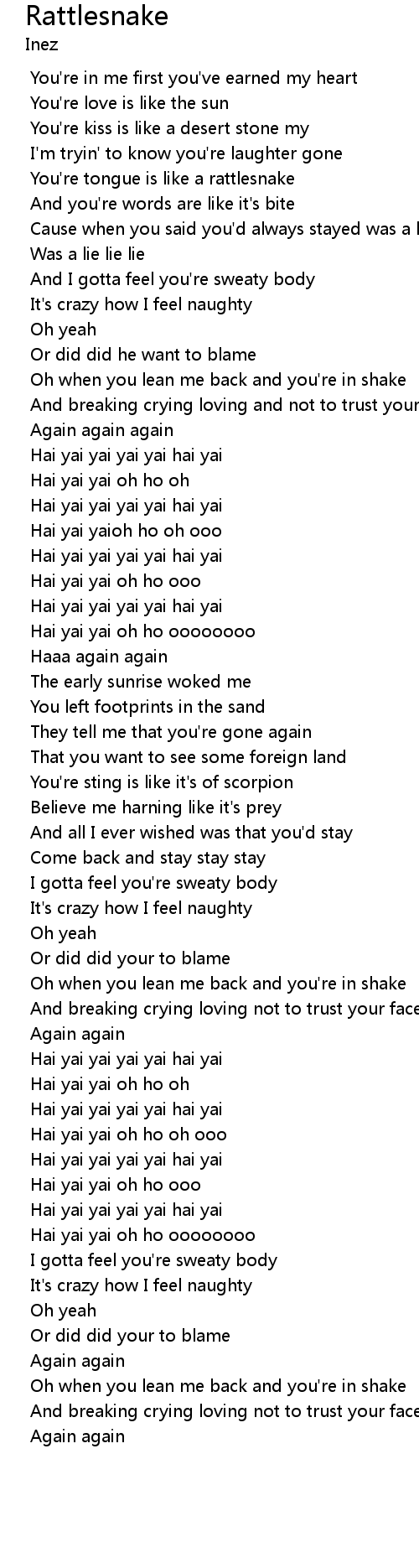 Hai yai yai oh ho oooooooo |