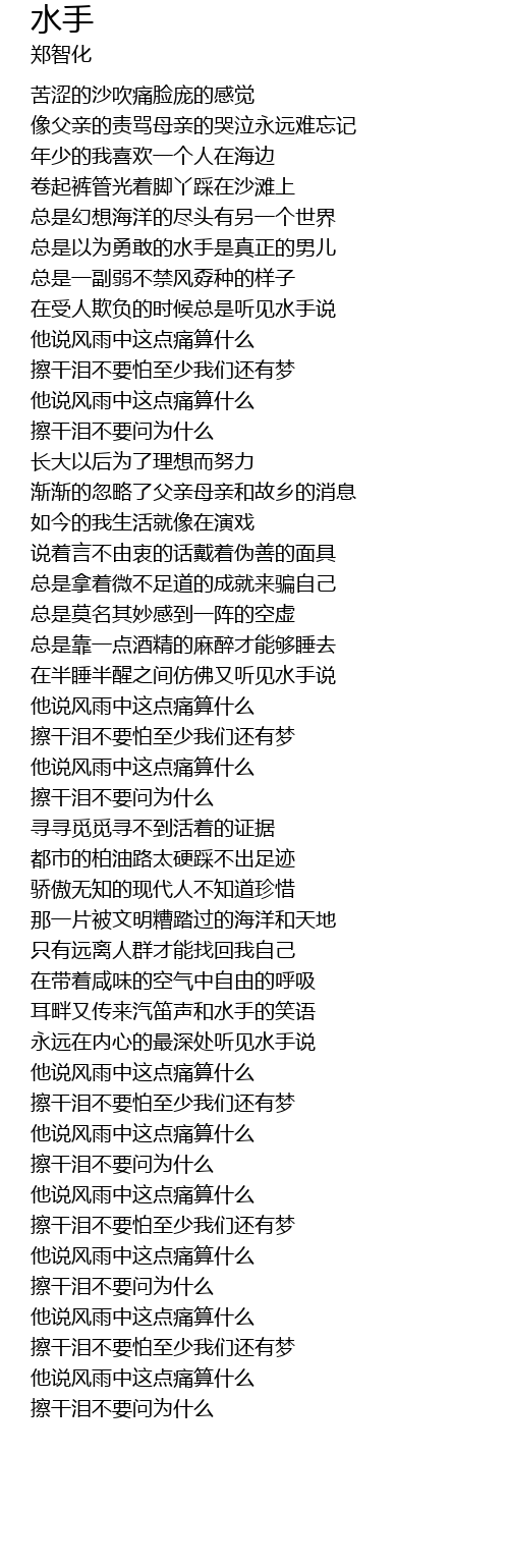 | [00:57.249] | 总是以为勇敢的水手是真正的男儿 |