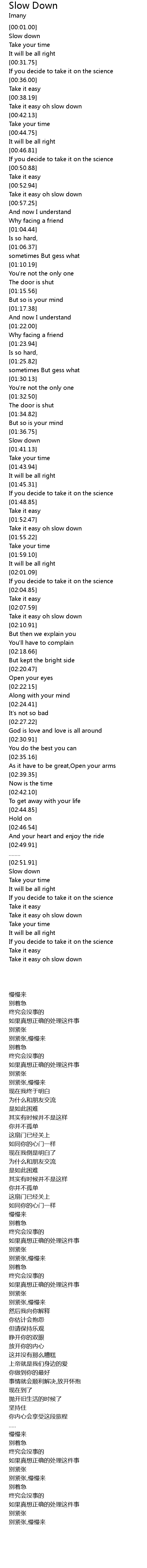 Take it easy oh slow down |