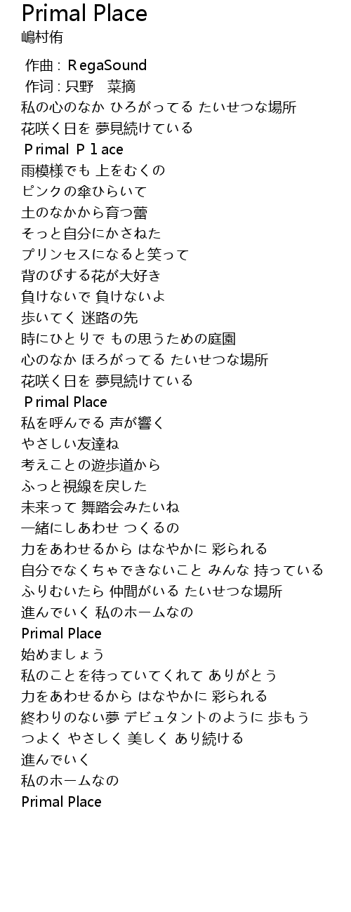 | [00:12.70] | Primal Place |