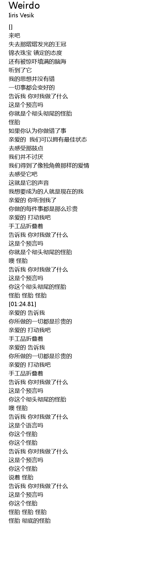 | [01:17.27] | 怪胎 怪胎 怪胎 |