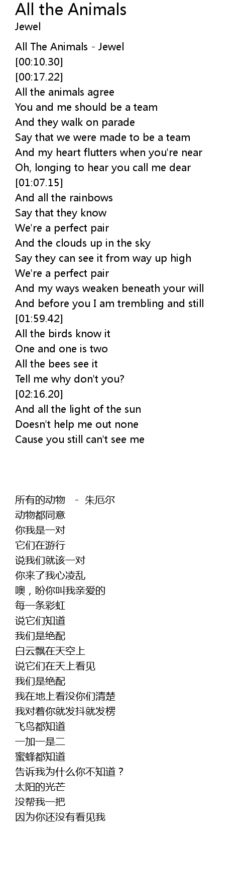 | [00:00.00] | All The Animals - Jewel |