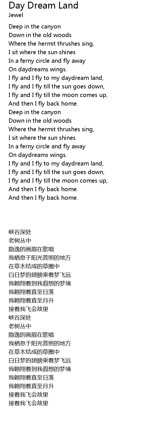 | [00:48.33] | I fly and I fly to my daydream land, |
