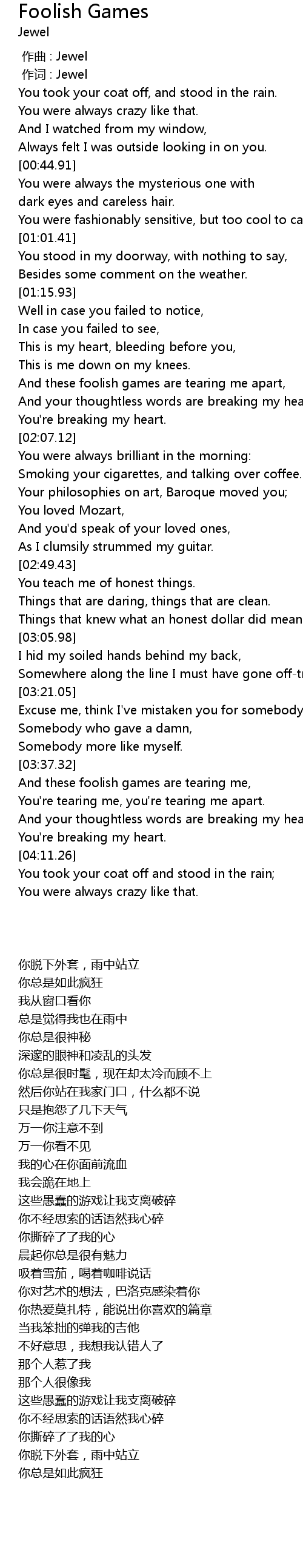 | [04:32.18] | You took your coat off and stood in the rain; |