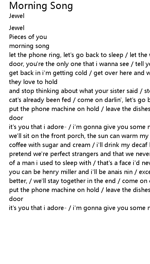 let the phone ring, let's go back to sleep / let the world spin outside our door, you're the only one that i wanna see / tell your boss you're sick, hurry, get back in i'm getting cold / get over here and warm my hands up, boy, it's you they love to hold |