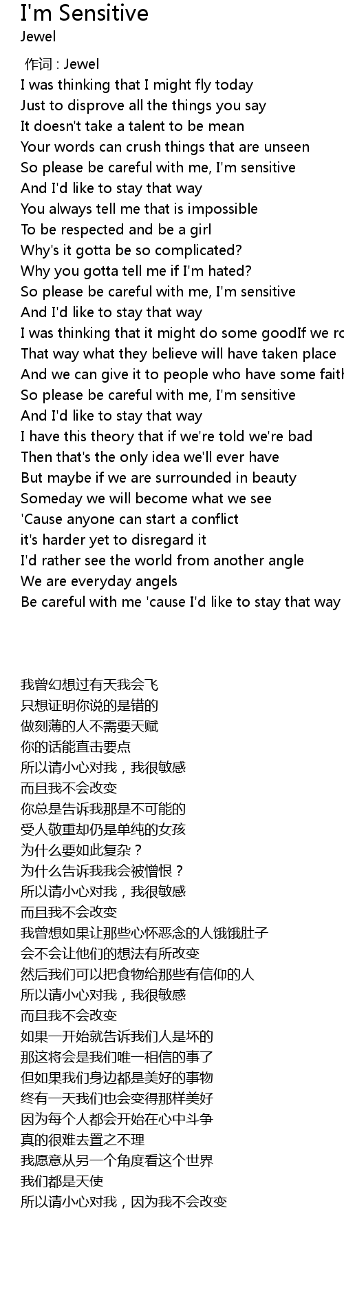 | [00:32.800] | So please be careful with me, I' m sensitive |