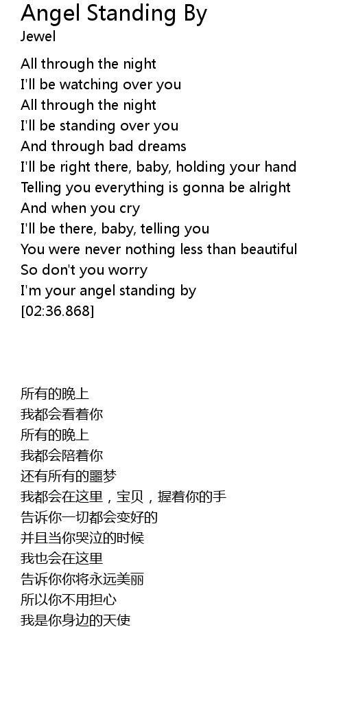 | [02:15.880] | I' m your angel standing by |