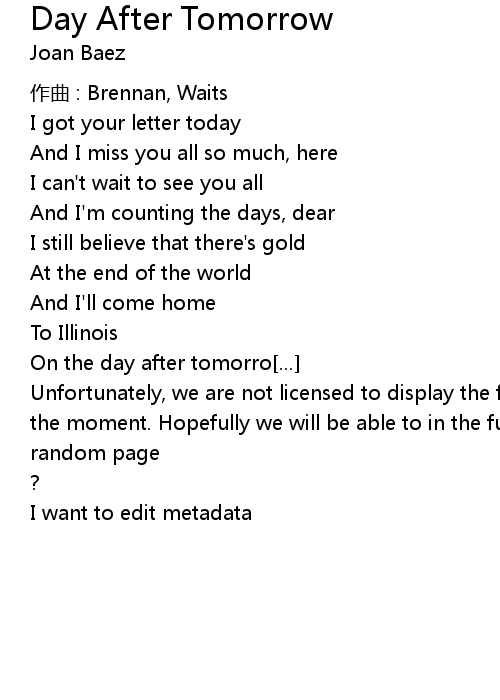 | Unfortunately, we are not licensed to display the full lyrics for this song at the moment. Hopefully we will be able to in the future. Until then, how about a | |