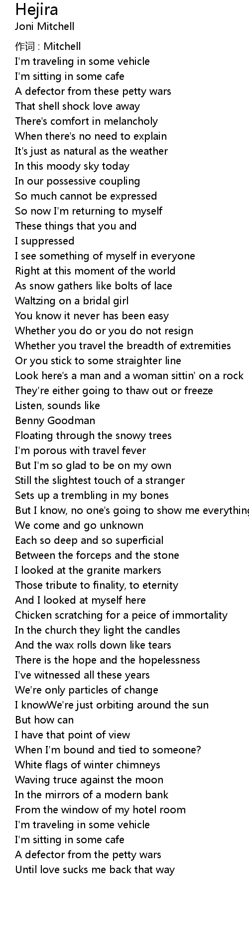 | Song | Hejira |