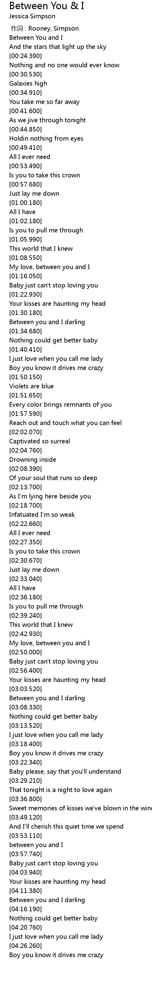 | [03:56.240] | between you and I |