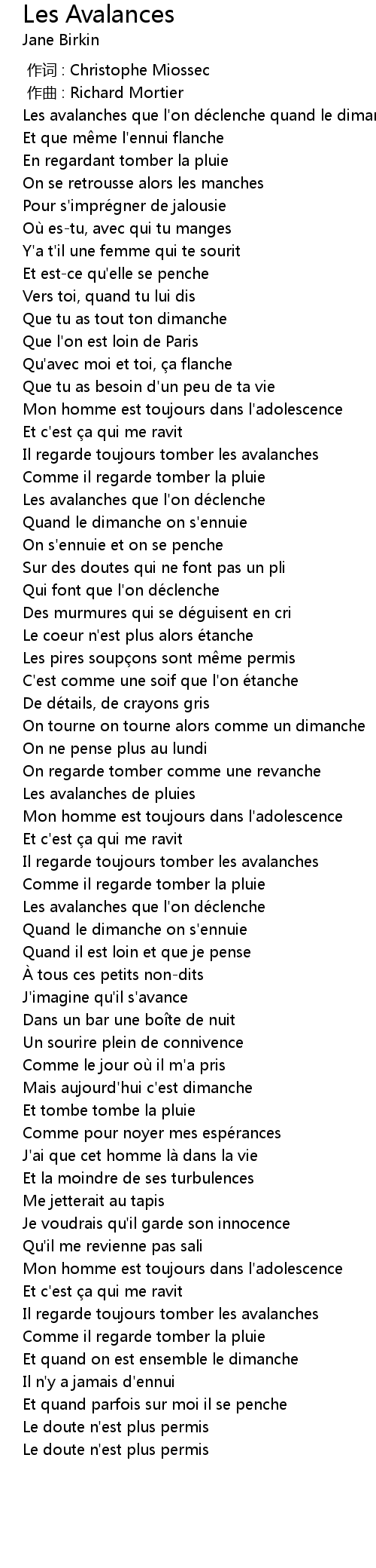 | [01:03.34] | Il regarde toujours tomber les avalanches |