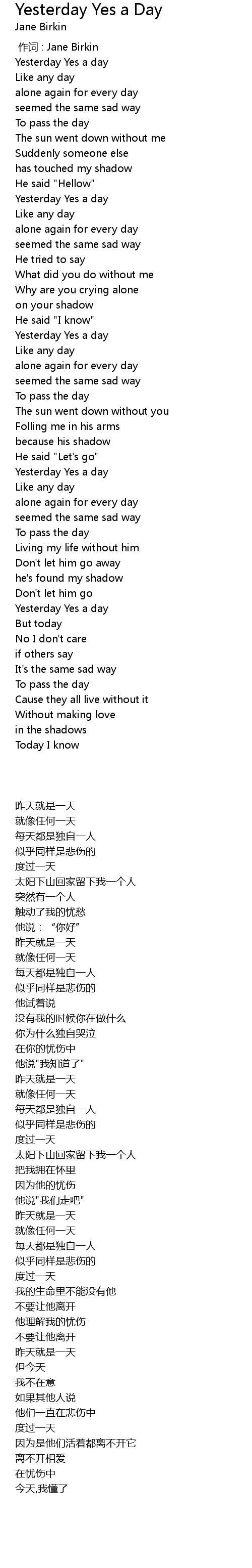 | [02:17.410] | Yesterday Yes a day |