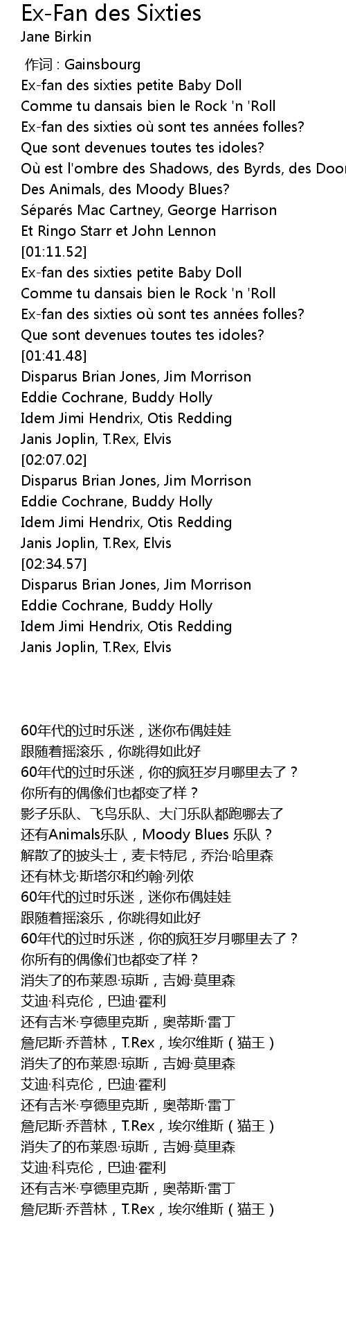 | [00:16.80] | Ex-fan des sixties petite Baby Doll |